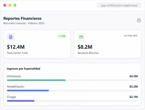 Advanced, specialty-focused tools such as interactive graphic odontograms, detailed periodontograms, and comprehensive orthodontic treatment tracking. Designed to support accurate diagnosis, clinical follow-up, and long-term patient care across dental specialties.